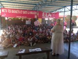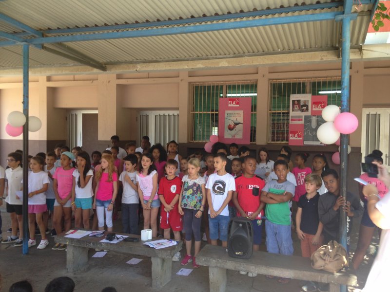 Lundi 9 octobre, Nicole Dambreville, comédienne et chanteuse renommée, est venue à l'école pour faire la dictée aux élèves de cycle 3 et quelques-uns du cycle 2. Ils ont ensuite chanté la chanson d'ELA. Cette action s'inscrit dans le projet ELA, en faveur des enfants touchés par la leucodystrophie. Nous la remercions chaleureusement pour sa généreuse présence.