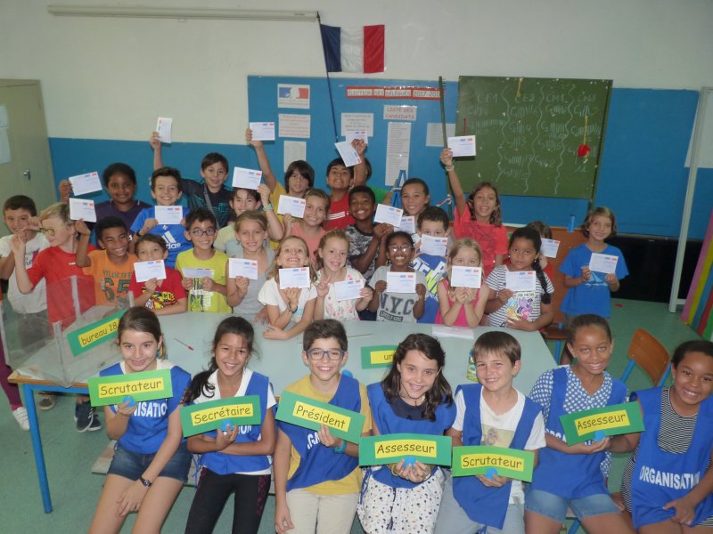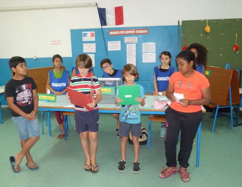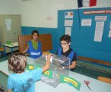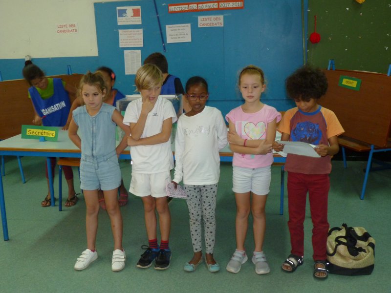 La classe de CM2 de Mme Léandre a ensuite organisé l'élection des délégués d'école. Les délégués de classe ont ainsi à leur tour, élu les délégués d'école, au nombre de 4 (un par niveau, excepté le CP), qui assisteront aux conseils d'école.
